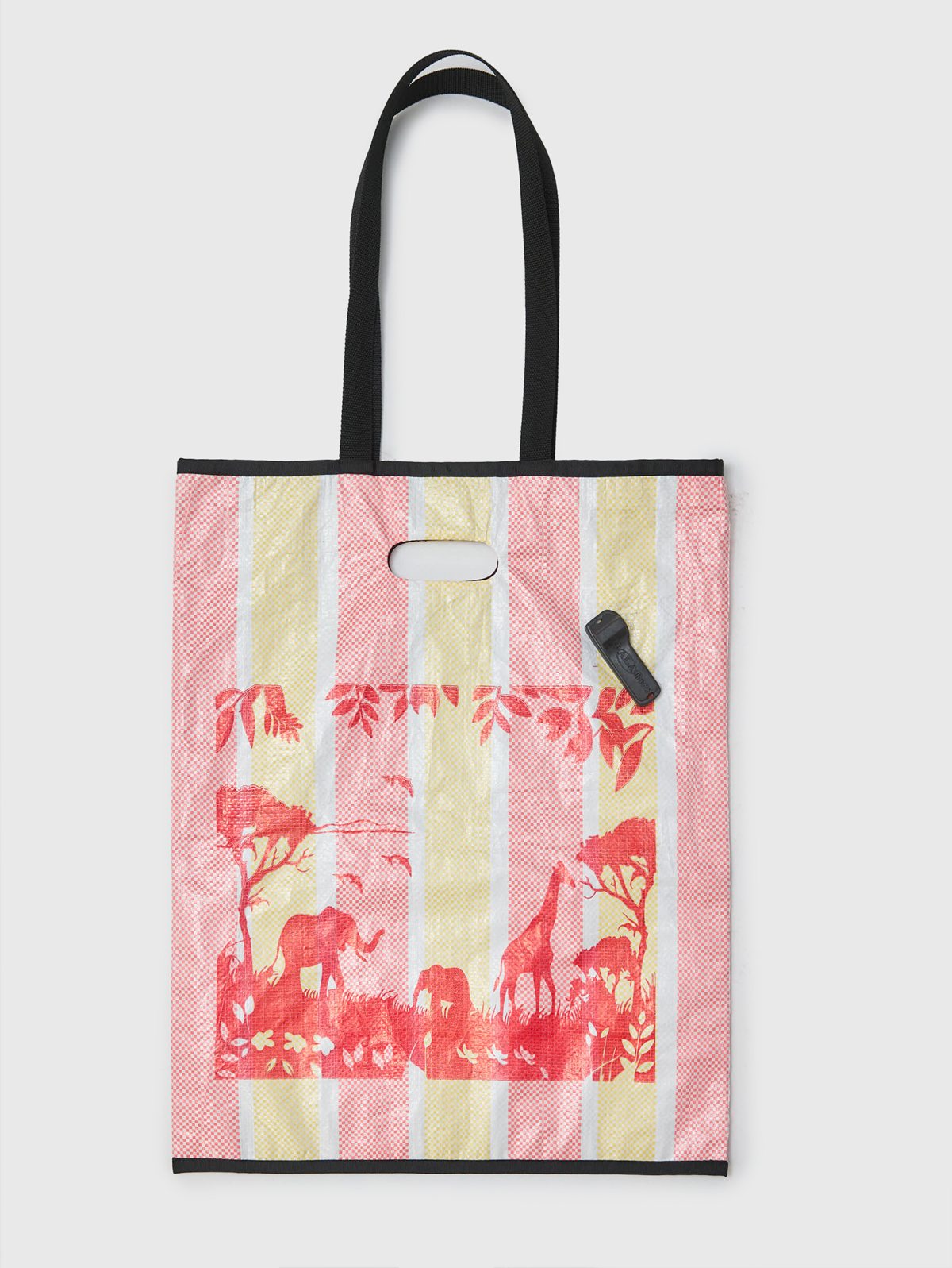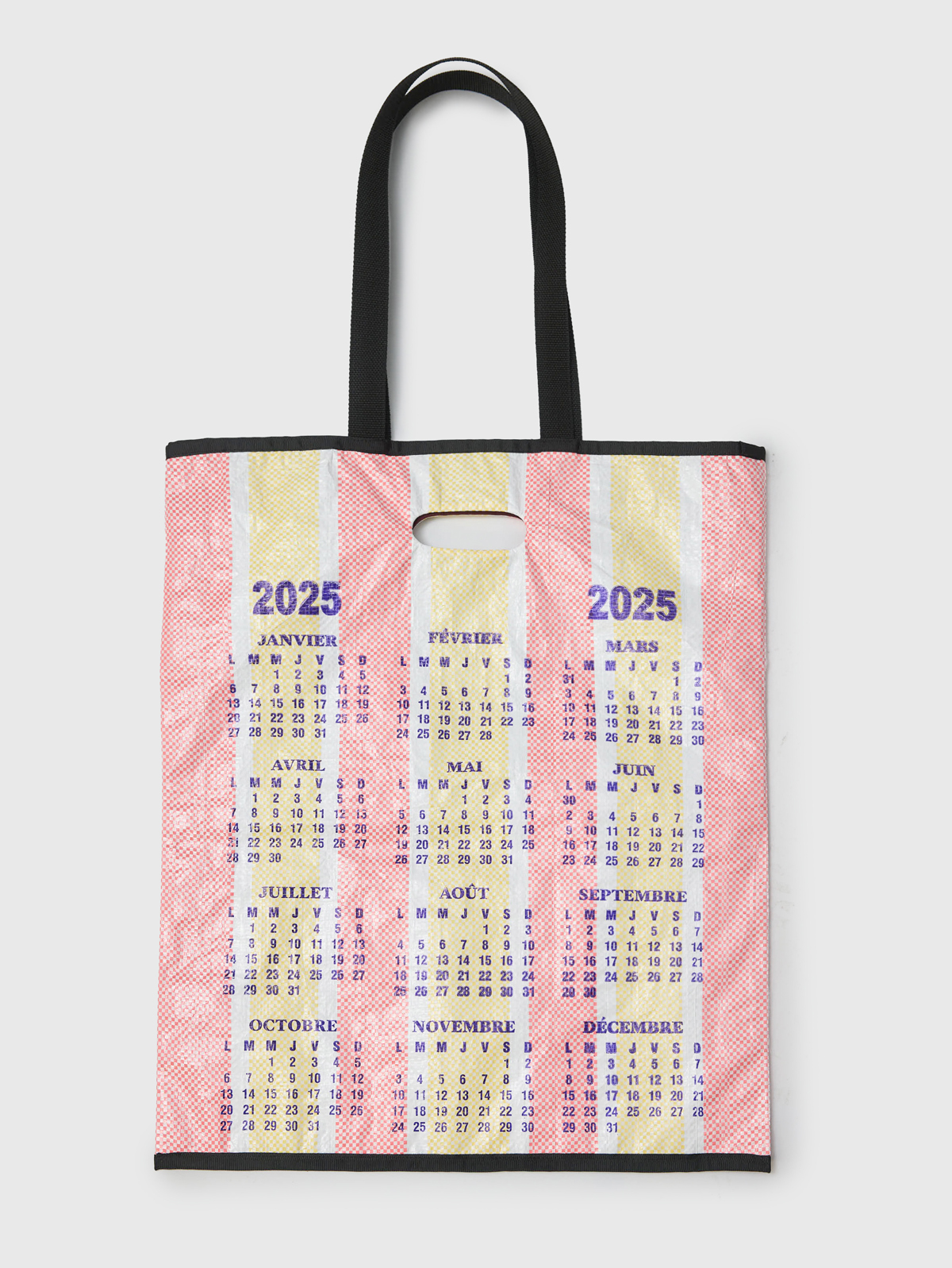 Printed in Kigali and Made in England, the Calendar Bag is produced from woven plastic yarn, lined with premium durable cotton. Each bag is finished with grosgrain trim and a 3D printed security tag embossed with the Le Tings logo. The Calendar Bag features grab handles and webbing tote handle straps for alternative use.
