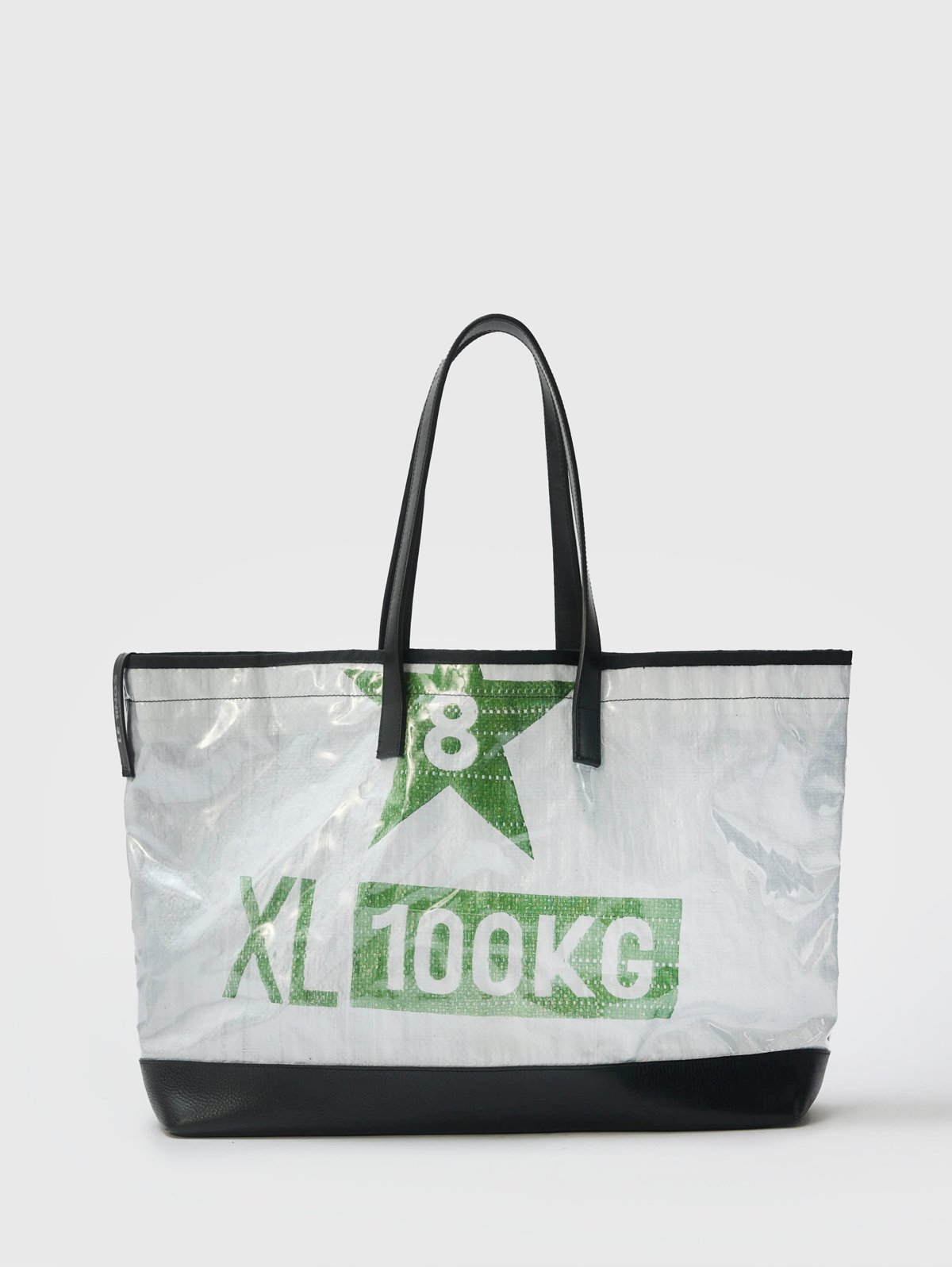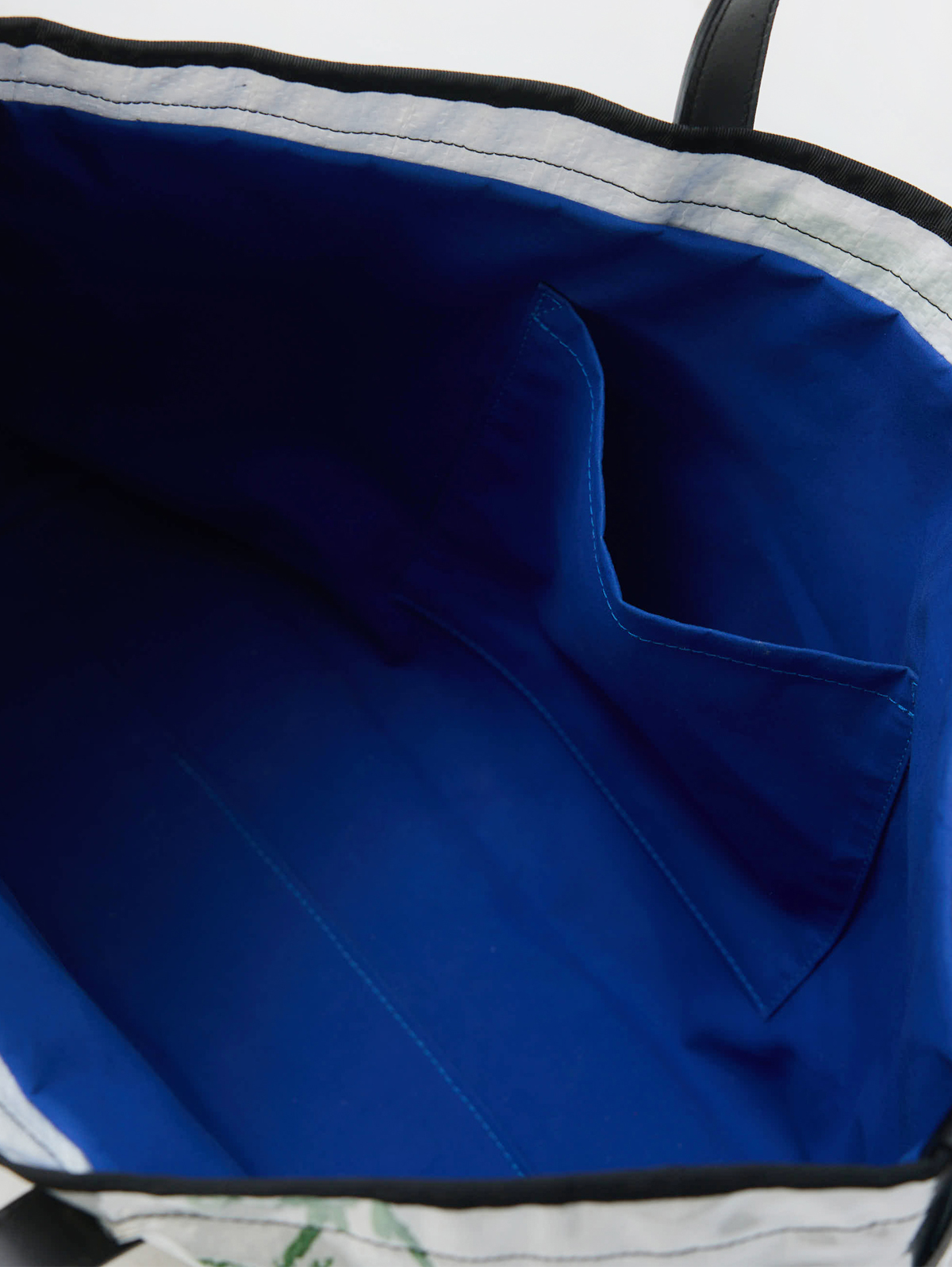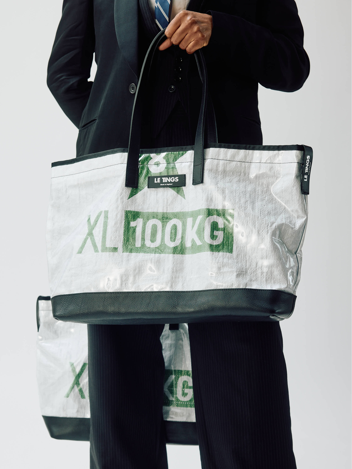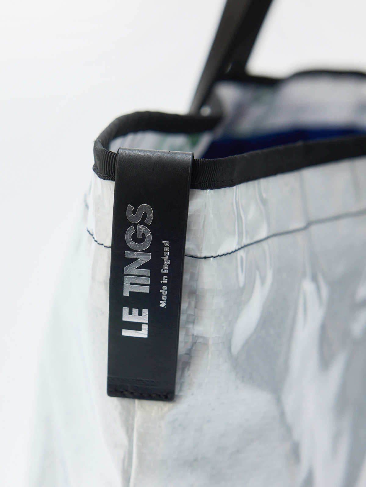 Lined with a premium durable cotton with an internal patch pocket. The tote outer is coated in recycled PVC which is showerproof and finished with a black grosgrain trim, with black leather debossed labels with silver foil at the front and side.
