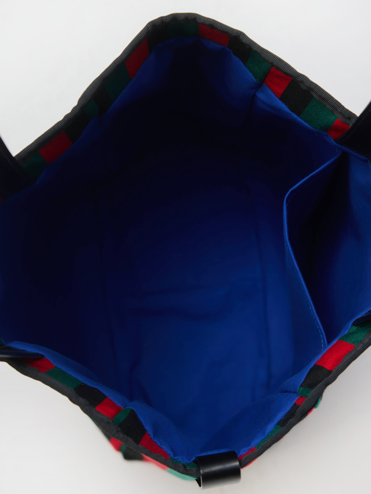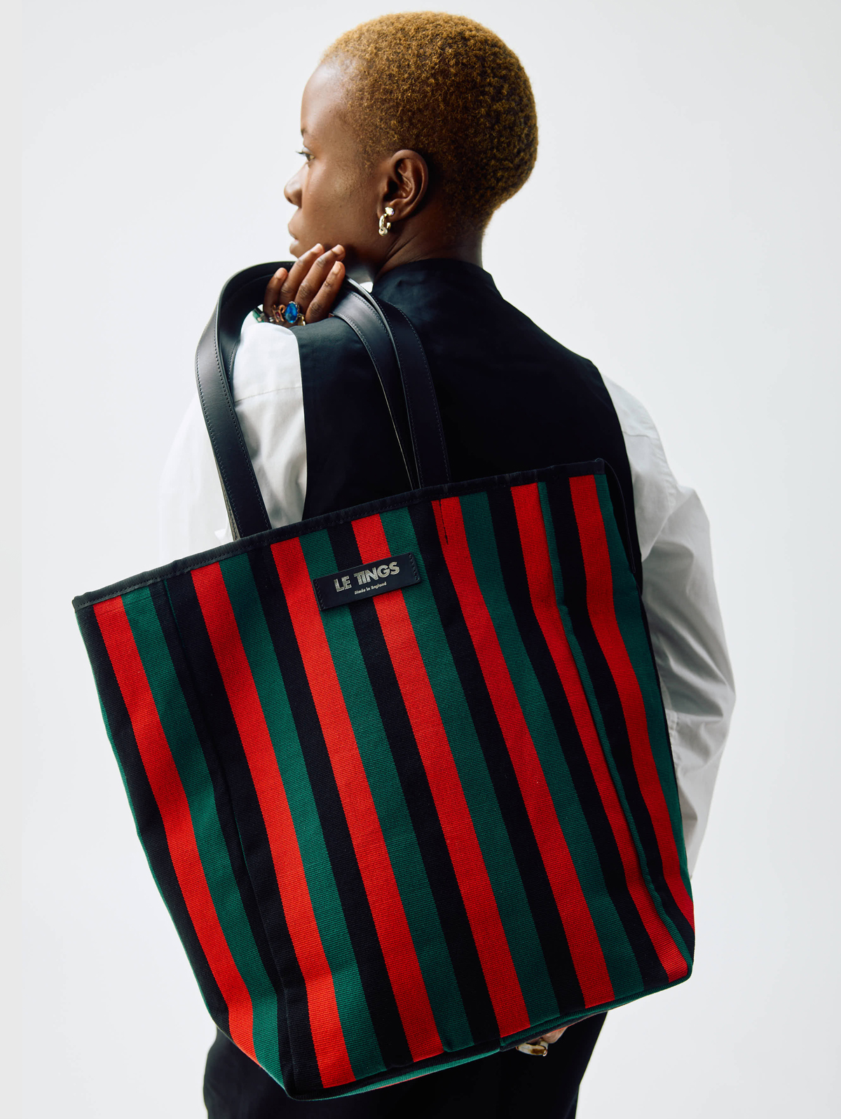 Crafted in Ghana and Made in England, the Kente Tote Bag is produced from hand woven Kente cloth, lined with premium durable cotton with an internal patch pocket. The bag is finished with double leather handles for ease of use. Each bag is finished with a black grosgrain trim, with black leather debossed labels with silver foil at front and side.
